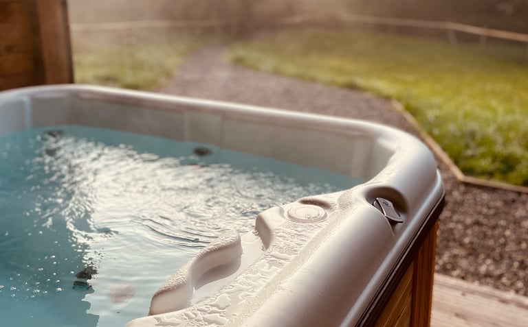 Unwind in the private hot tub and soak away your stresses in a serene setting.
