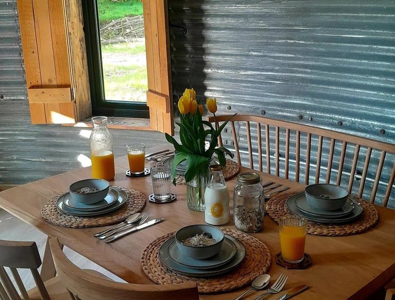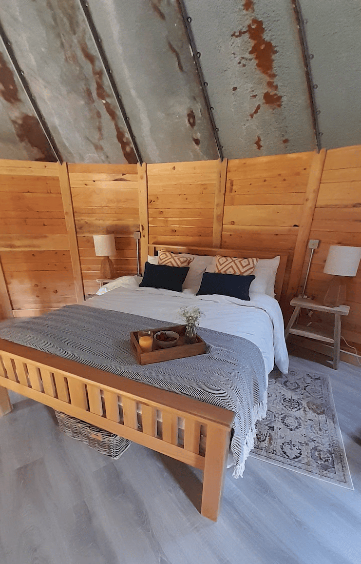 The inside of The Old Grain Store has been carefully thought out to make the most of the unusual circular shape of the building. The open plan kitchen has been fitted to match the curve of the walls and is fully-equipped with everything you’ll need to cook delicious meals or prepare some treats for the BBQ outside. After dinner, snuggle up in the living area with a fire crackling away in the wood-burner and get stuck into a board game or two.
