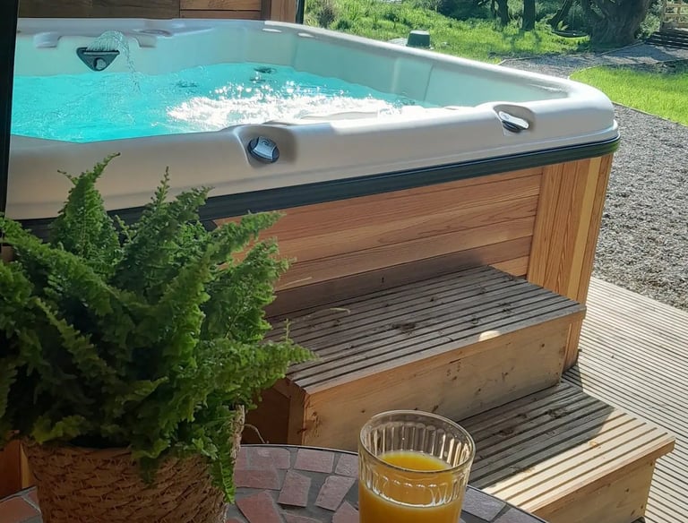 Unwind in the private hot tub and soak away your stresses in a serene setting.