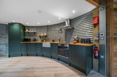 The curved wall of the building houses a stylish and well equipped kitchen that includes a hob, fridge, dishwasher, microwave and kettle. Everything you need for self catering is at your fingertips. The modern bathroom is finished to a high standard with a rainfall shower, soft towels and complimentary toiletries. Underfloor heating runs throughout the property to keep it comfortable in every season.